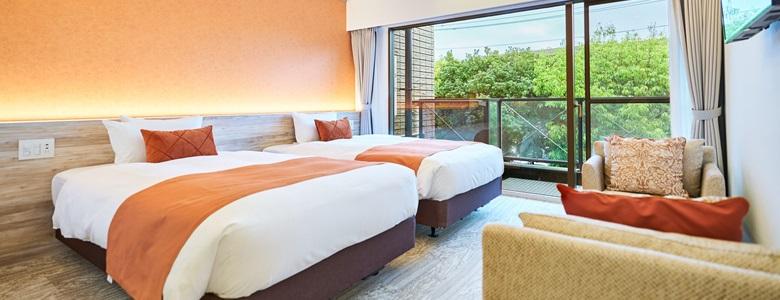 由比ヶ浜の爽やかな青とサンサンと降り注ぐ太陽の黄色をアクセントに、明るい色調ながらシンプルで落ち着いたデザインに。 ゆったりとくつろげる客室で心もカラダもリラックスいただけます。