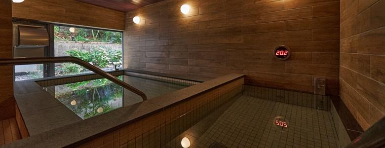 男女ともに広々としたレイアウトの大浴場には、セルフロウリュが楽しめるドライサウナを完備。