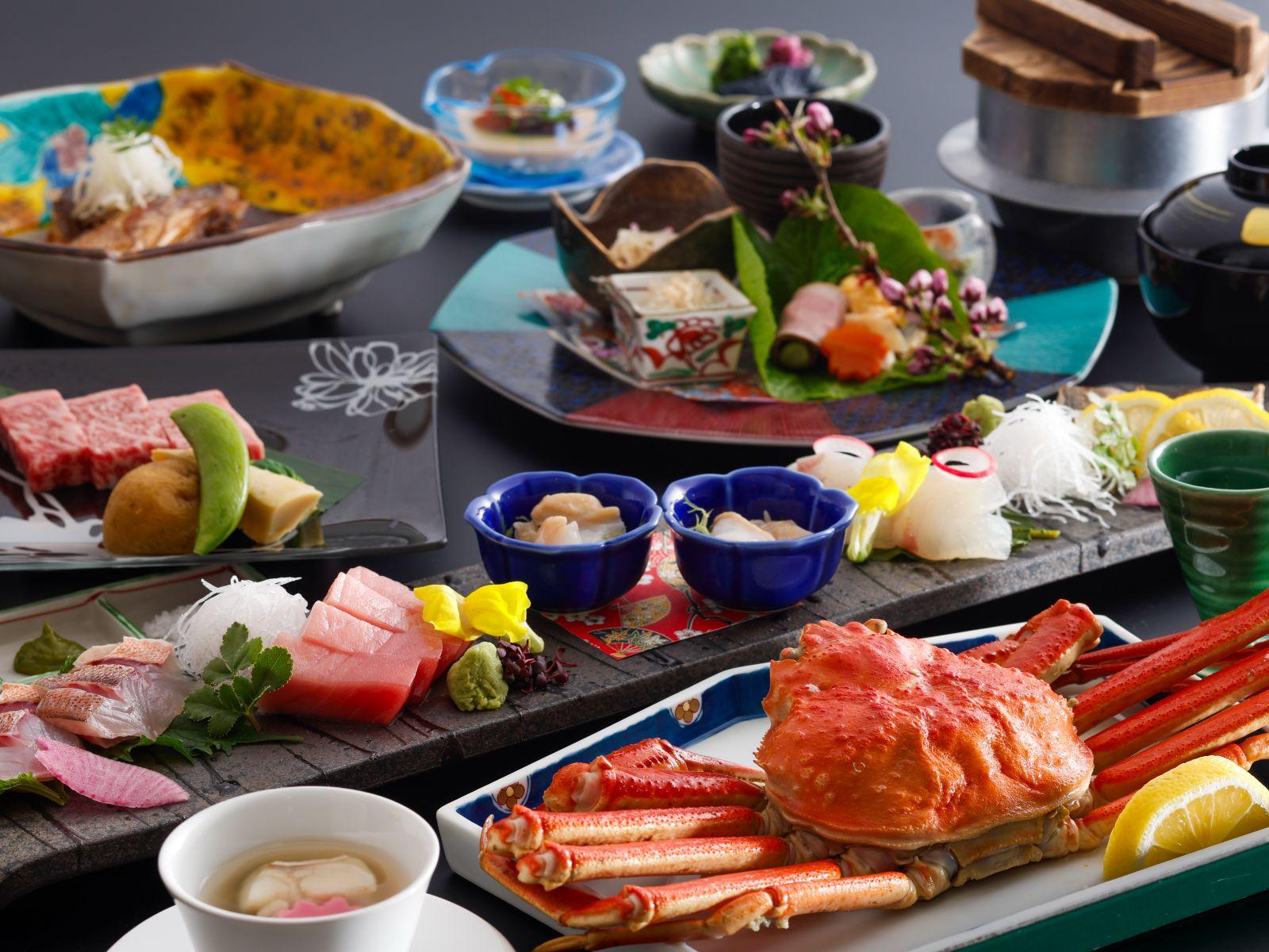 「活蟹尽くし懐石」では、ずわい蟹や寒ぶり、甘海老などの旬のお...