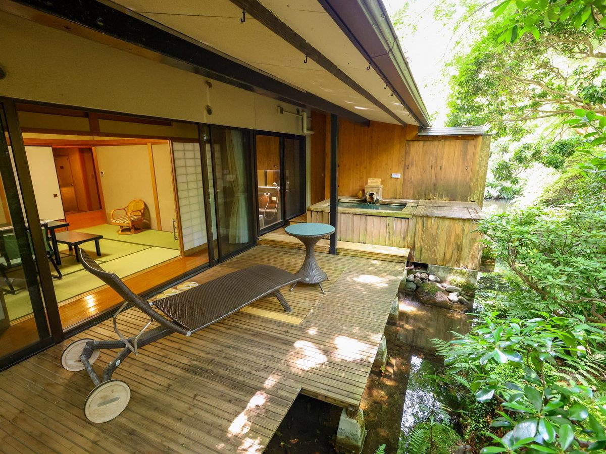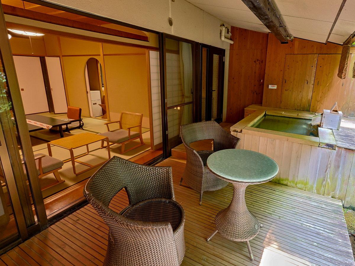 【和洋室露天風呂付70平米】客室露天風呂は、趣のある作りとな...