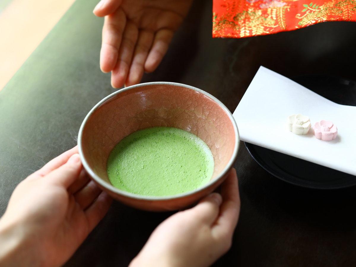 【フロントロビー】チェックイン時にはお抹茶と和三盆の和菓子で...