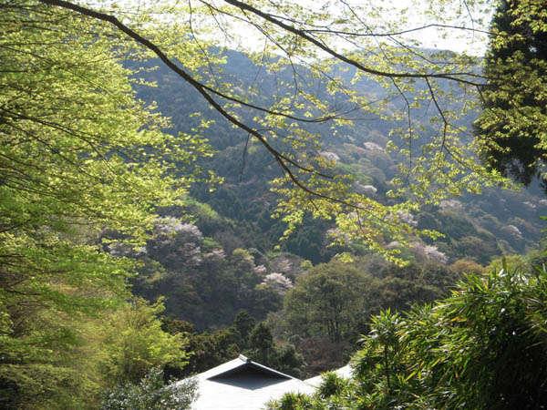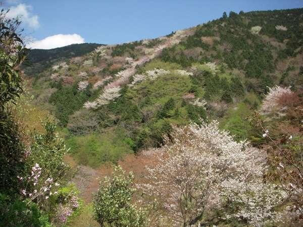 海石榴の敷地内散策路から見た春の風景。山桜が綺麗です。
