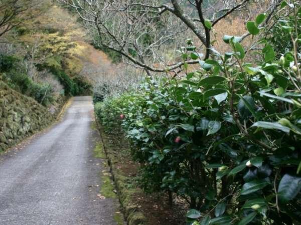 ■海石榴の敷地内にある散策路入り口。桜の咲く季節には700本...
