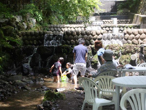 ■辰沢清流。敷地内清流に設けた、夏恒例の川遊び場です。