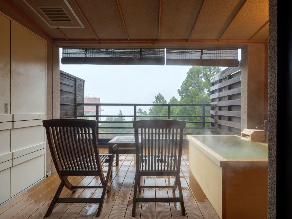 【檜温泉露天風呂付き和洋室】待望の温泉露天風呂付き客室。宮ノ...