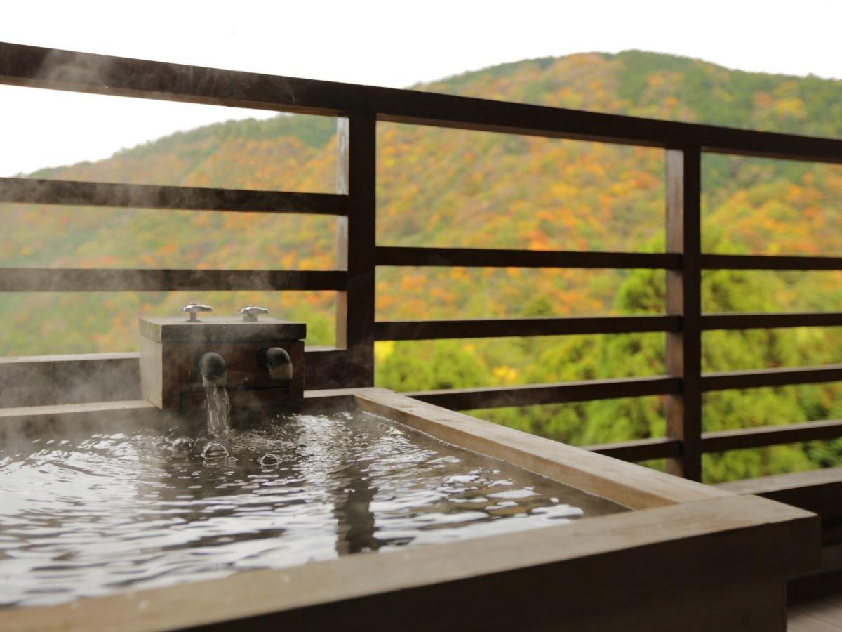 【檜露天風呂付き和洋室】秋のイメージ。紅葉を眺めながらゆった...