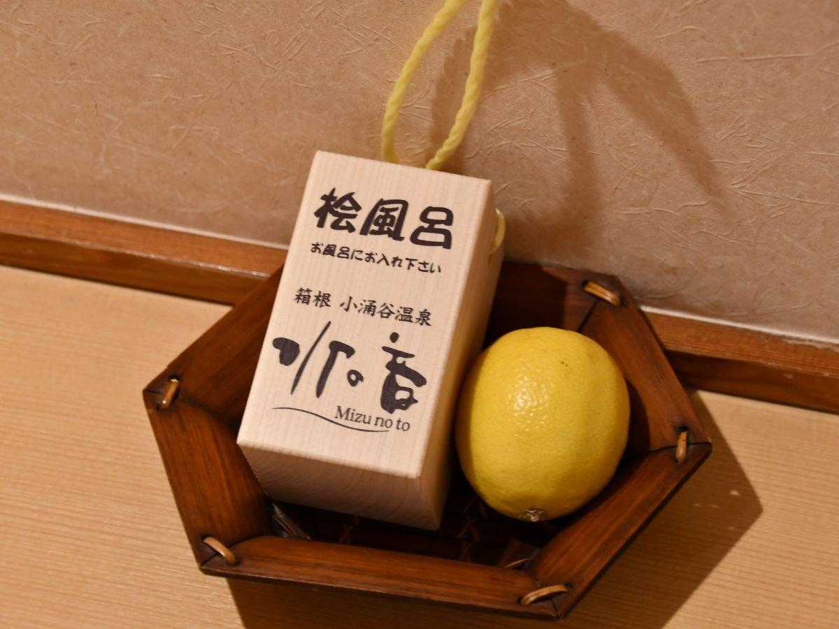 【サービス】露天風呂付き客室には檜ブロックとレモンをご用意。