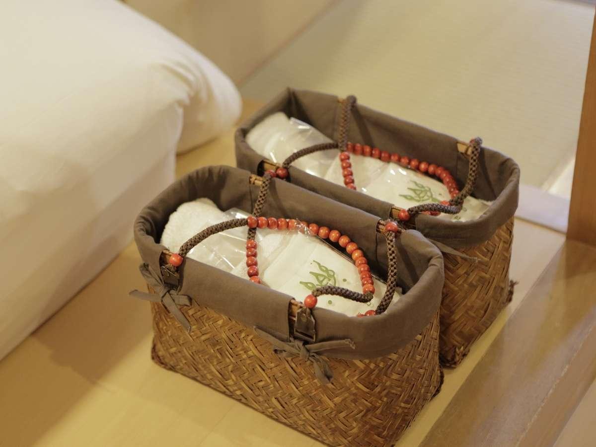 【客室備品】部屋から湯かごを持って、湯めぐりを。