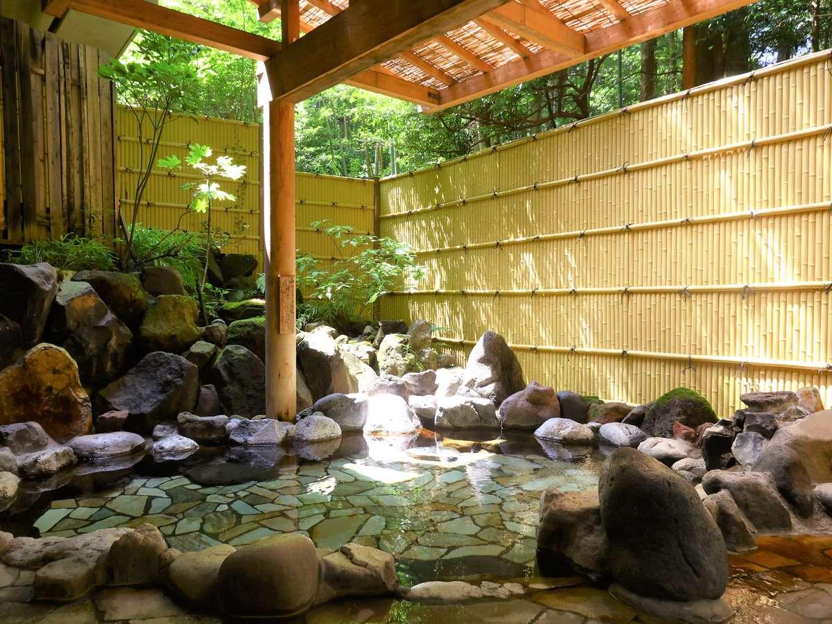 【大浴場露天:星の湯】竹林をのぞみながら寛ぐ岩露天風呂。