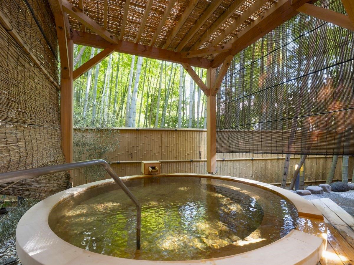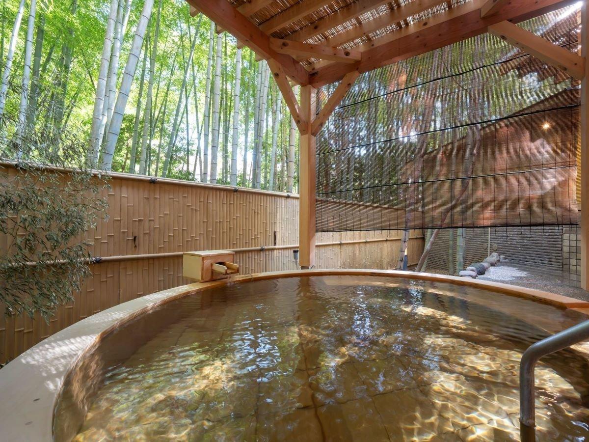 【大浴場露天:月の湯】竹を眺めながら入る、雰囲気と落ち着きが...