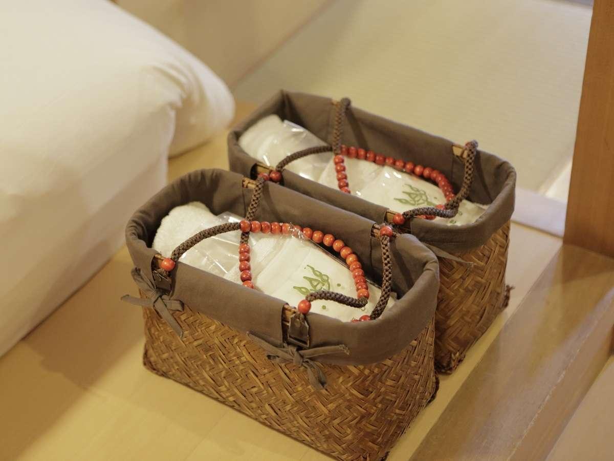 【客室備品】タオルの入った湯かごをご用意。