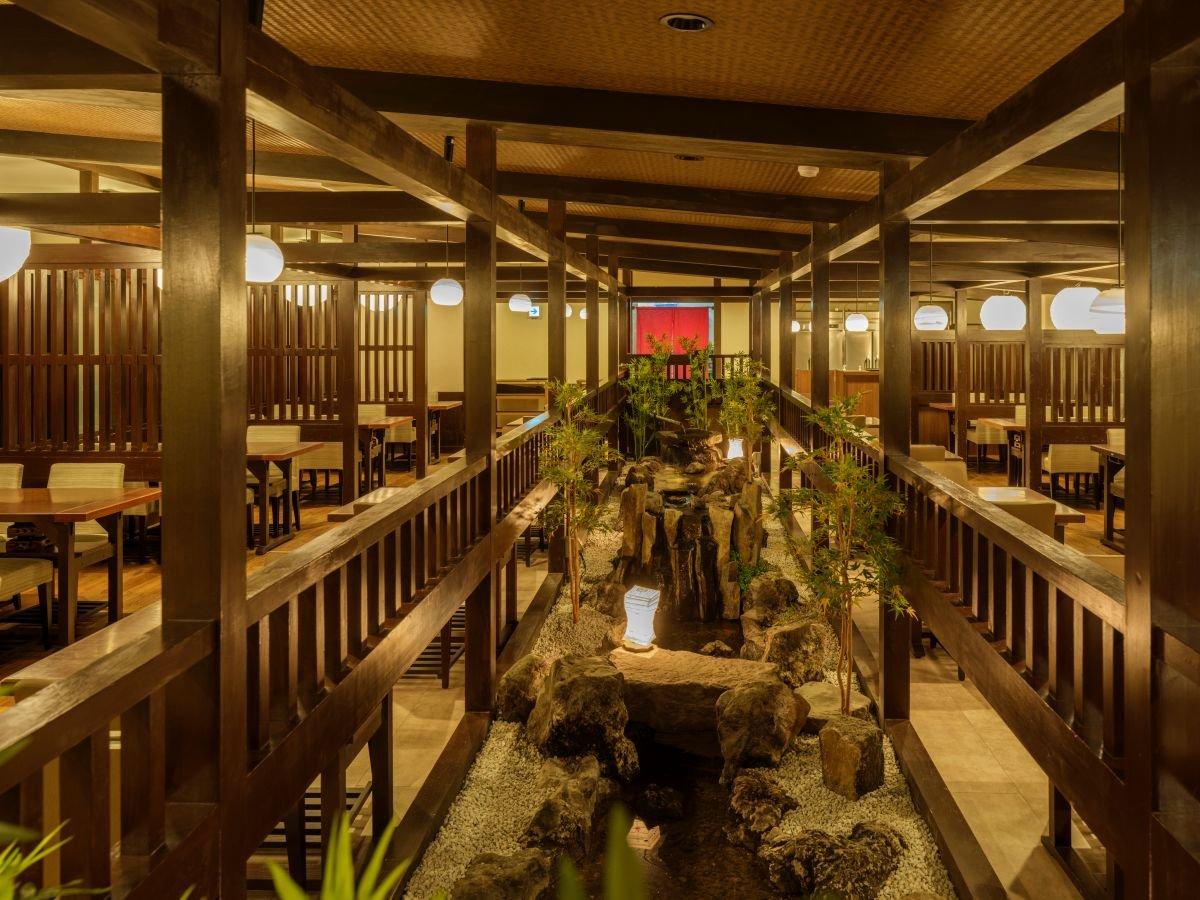 【食事処/つつじ亭】エントランスを抜けると水景がお出迎え。