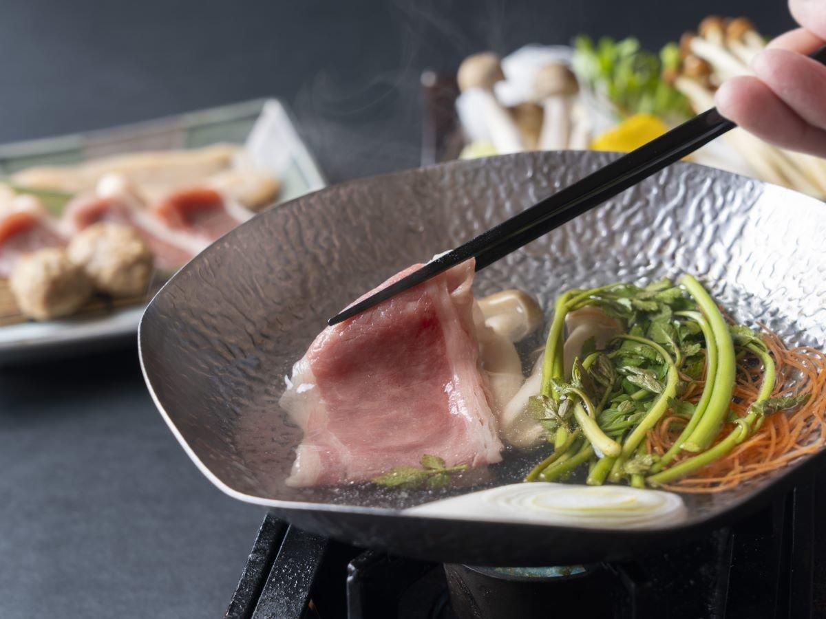【夕食/足柄遊膳会席】お肉の出汁たっぷりのお鍋を堪能。