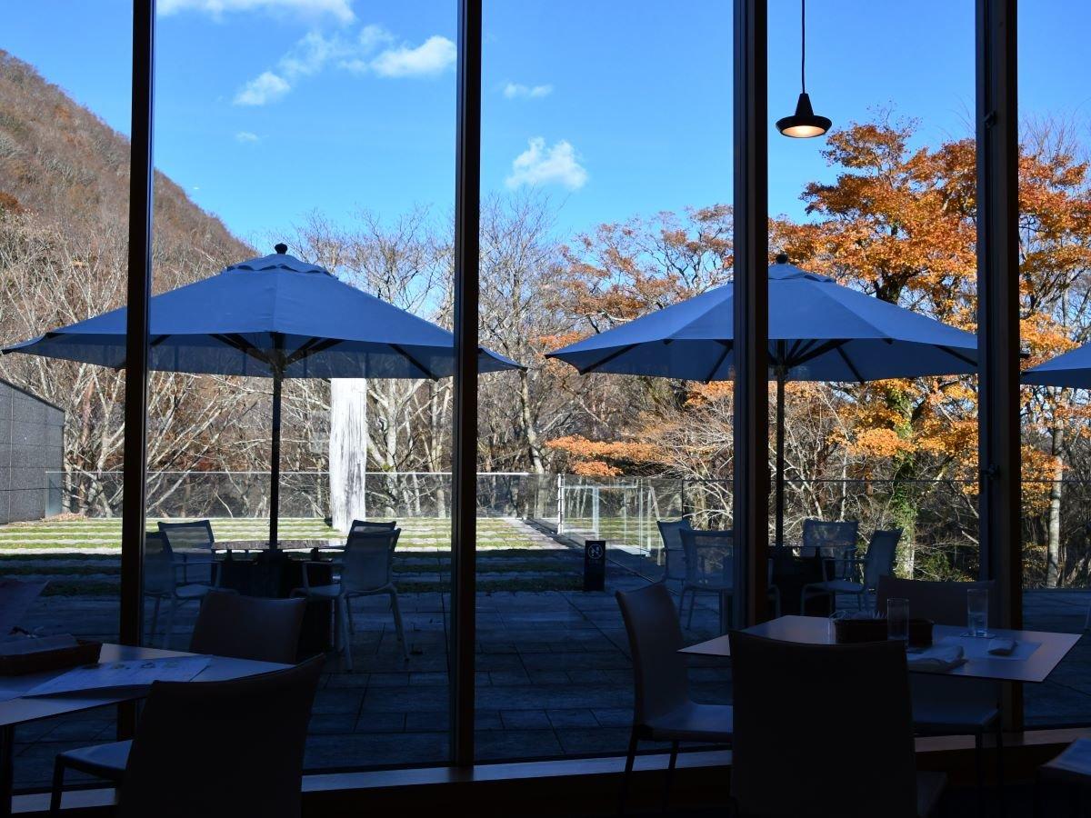 【ポーラ美術館】レストランからは小塚山の眺望が広がる。