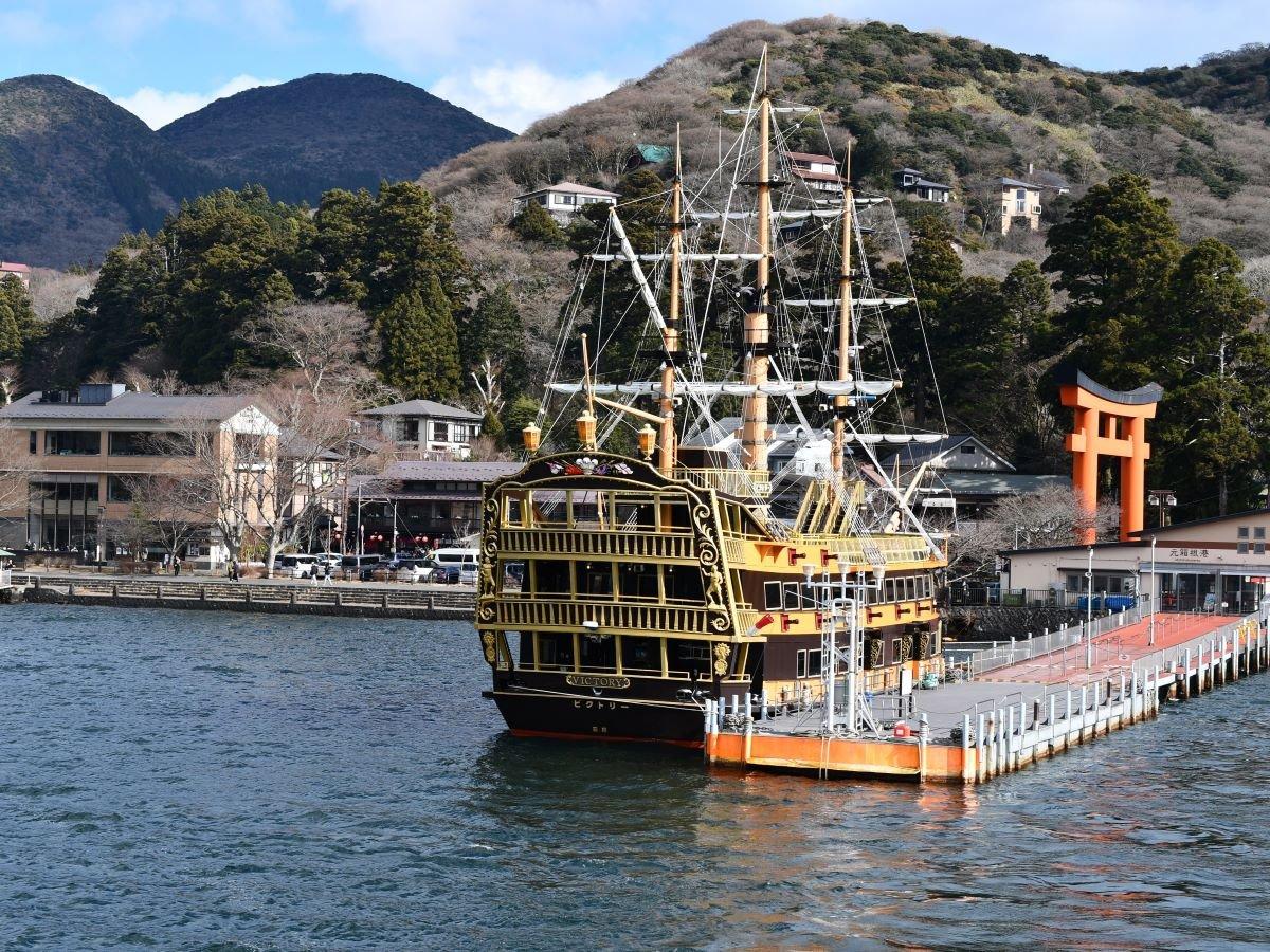 【箱根海賊船】桃源台港から箱根町港・元箱根港を航海できる。