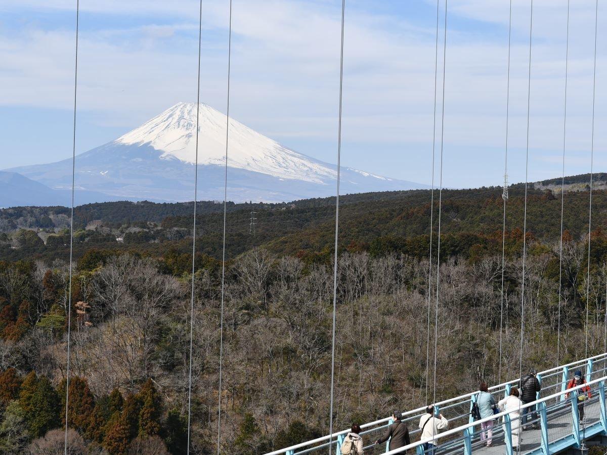 【三島スカイウォーク】日本最長のつり橋から富士山を望む。