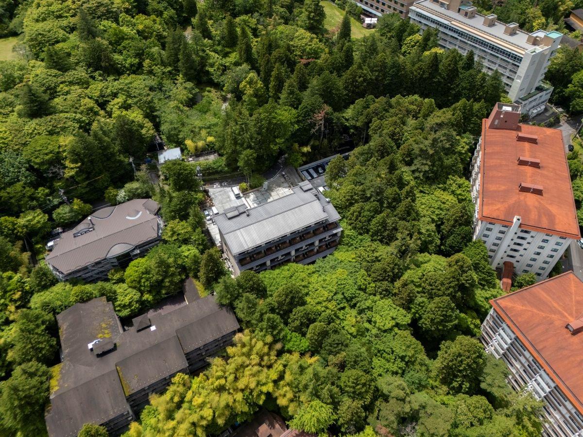 【外観】建物を上から見た図。緑に囲まれた湯宿。
