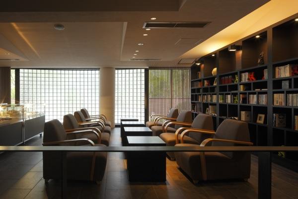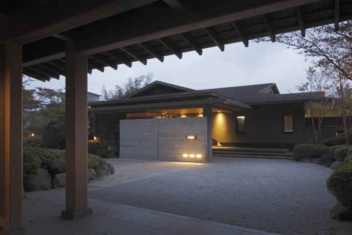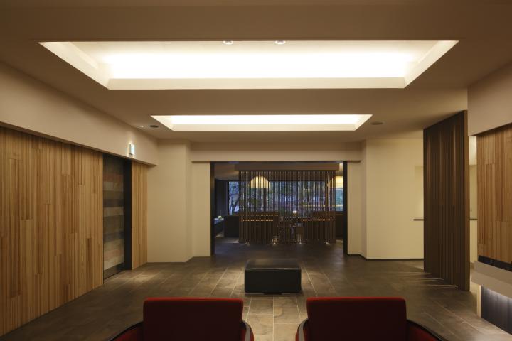 和を基調としたスタイリッシュなリンビング、水盤の中庭を望む落...
