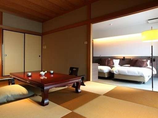 和洋2間のゆったりおくつろぎ頂ける客室。(かたくり)