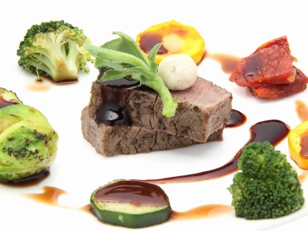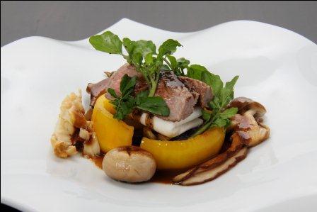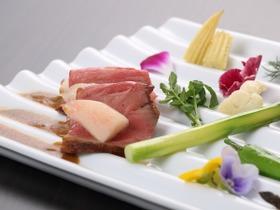 夏膳肉料理~白老牛低温ローストと夏野菜のグリエ桃とフォアグラ...