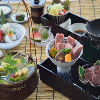 和歌山ブランド牛「熊野牛」の二種類の部位を楽しめる鉄板焼きがメインの会席料理。