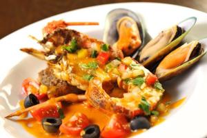 ・魚料理:伊勢海老(またはオマール・ロブスター)のブイヤベースソース