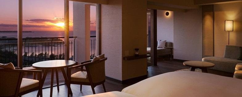 すべてのゲストルームは、プライベートバルコニーから東シナ海を見下ろすオーシャンビュー。