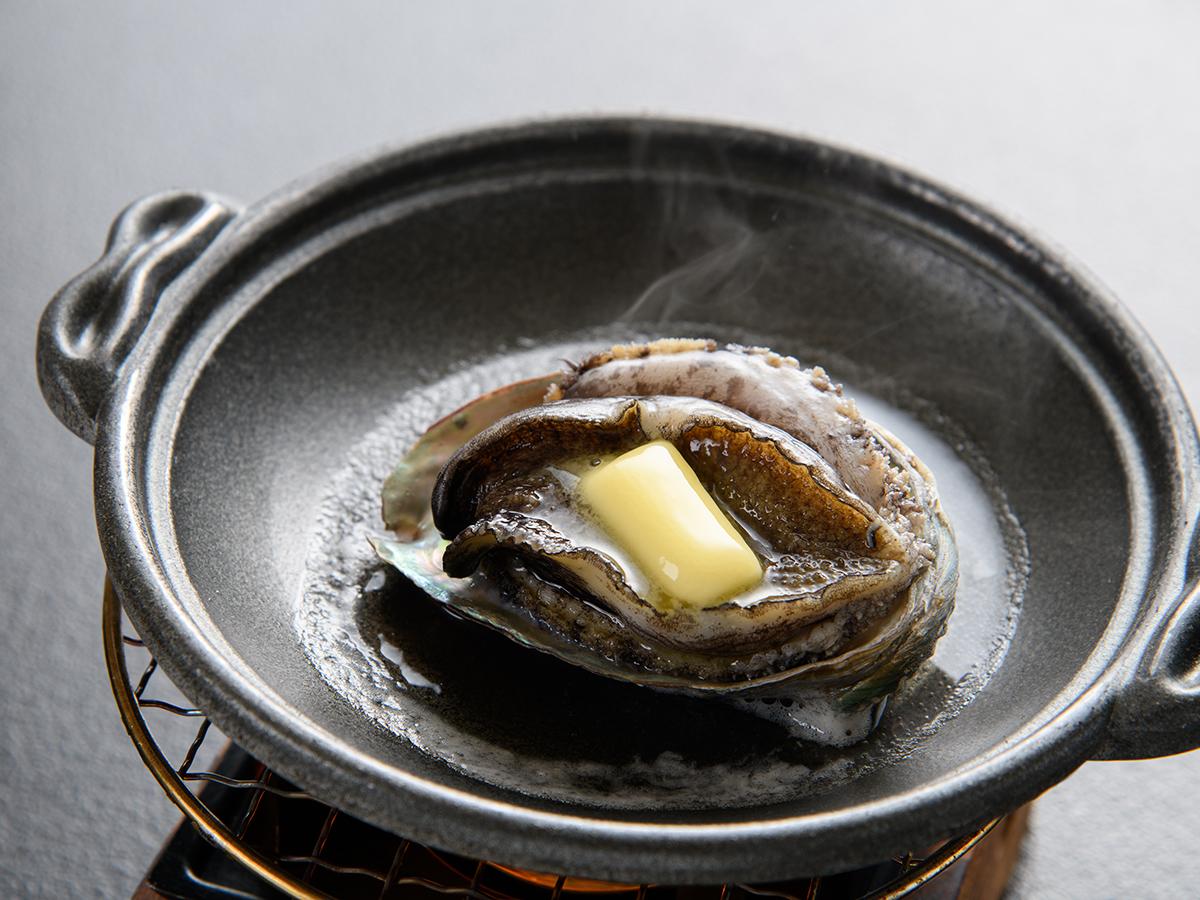 【ご夕食】北海道産エゾ鮑(アワビ)の踊り焼き/生きたエゾ鮑を...
