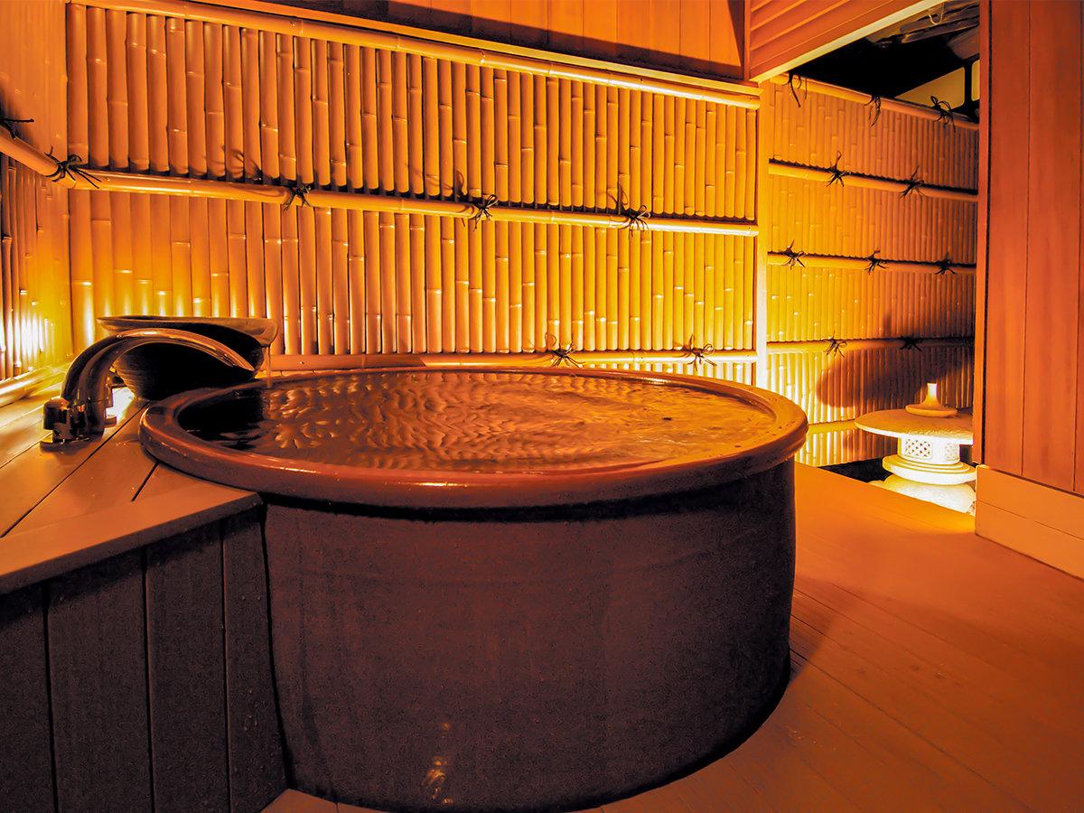 【離れ松風庵:光輪】お庭と一体化した総ヒノキ造り。源泉かけ流...