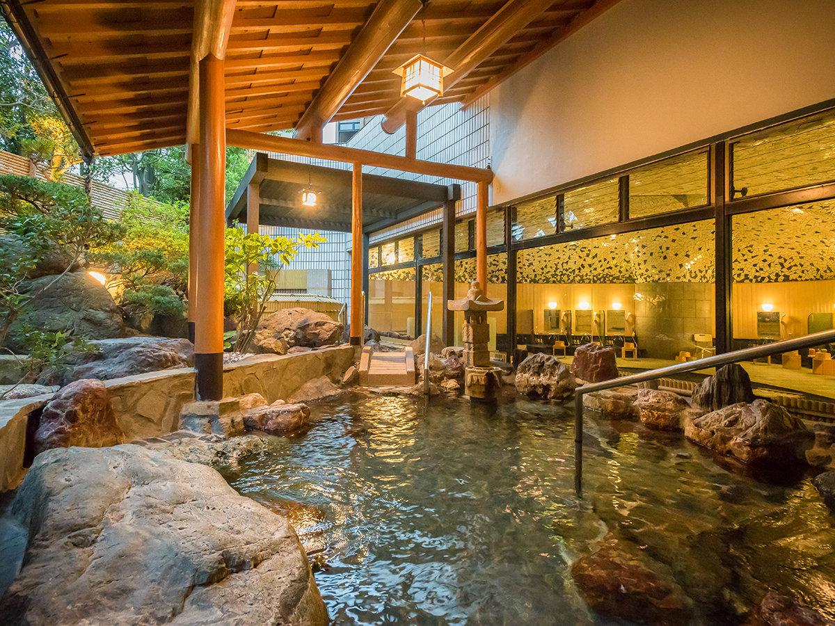 【大浴場:木もれ日の湯】露天風呂:湯の滝を眺めながらあわらの...