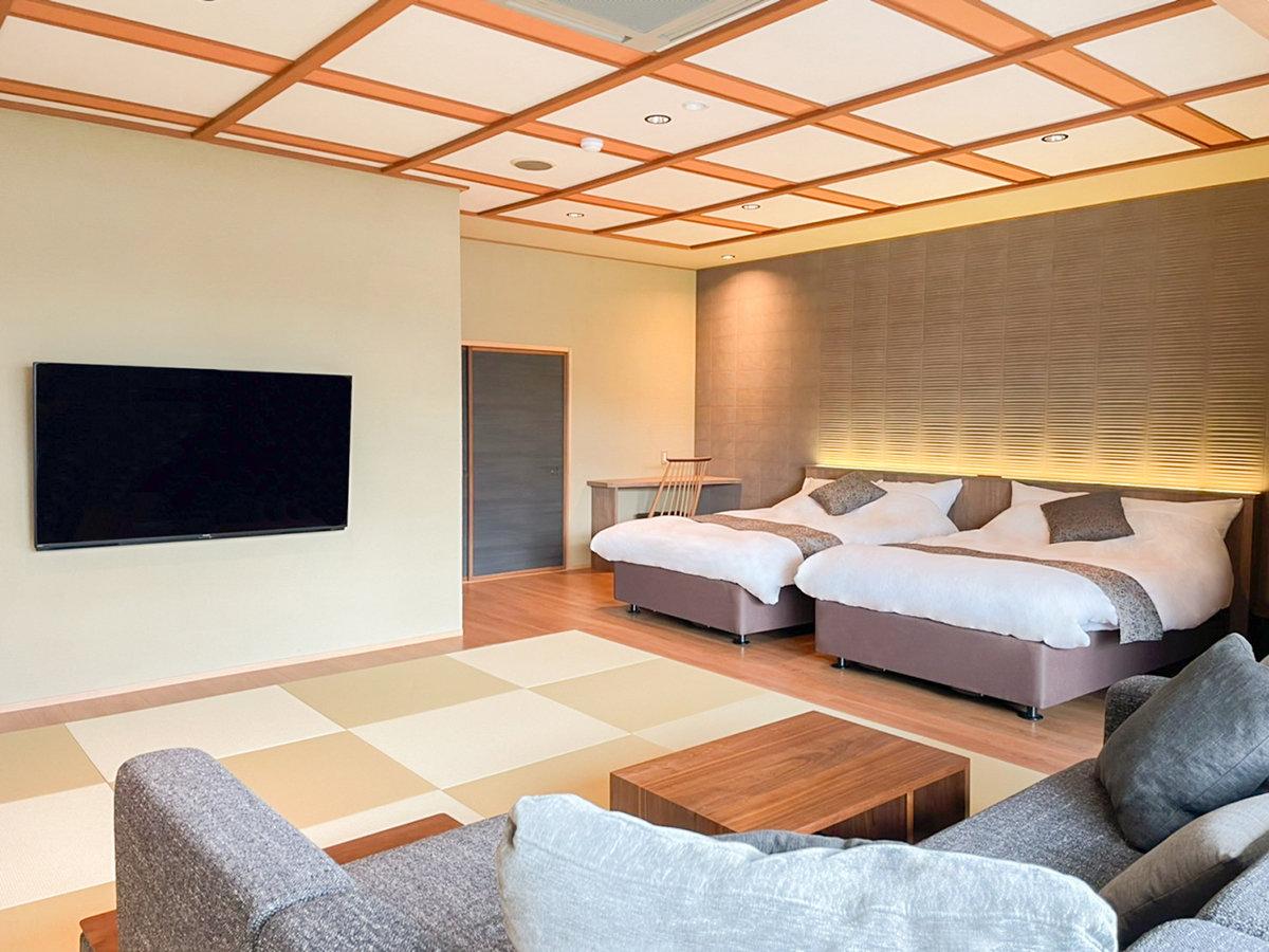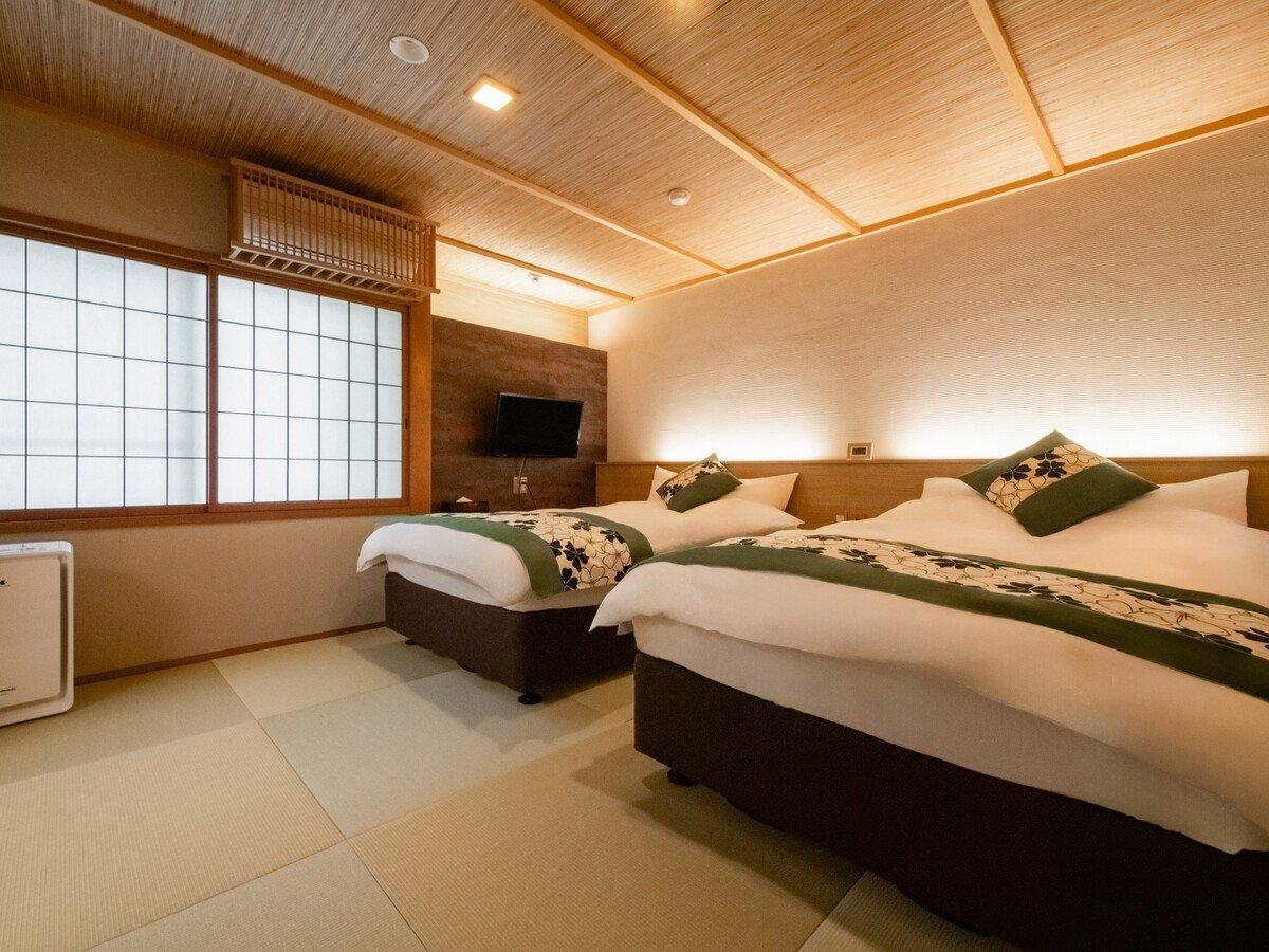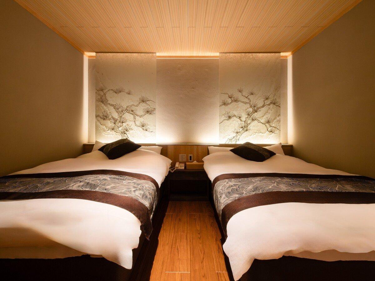 【ガーデンスイート観月亭】和洋室:寝室にはセミダブルのツイン...
