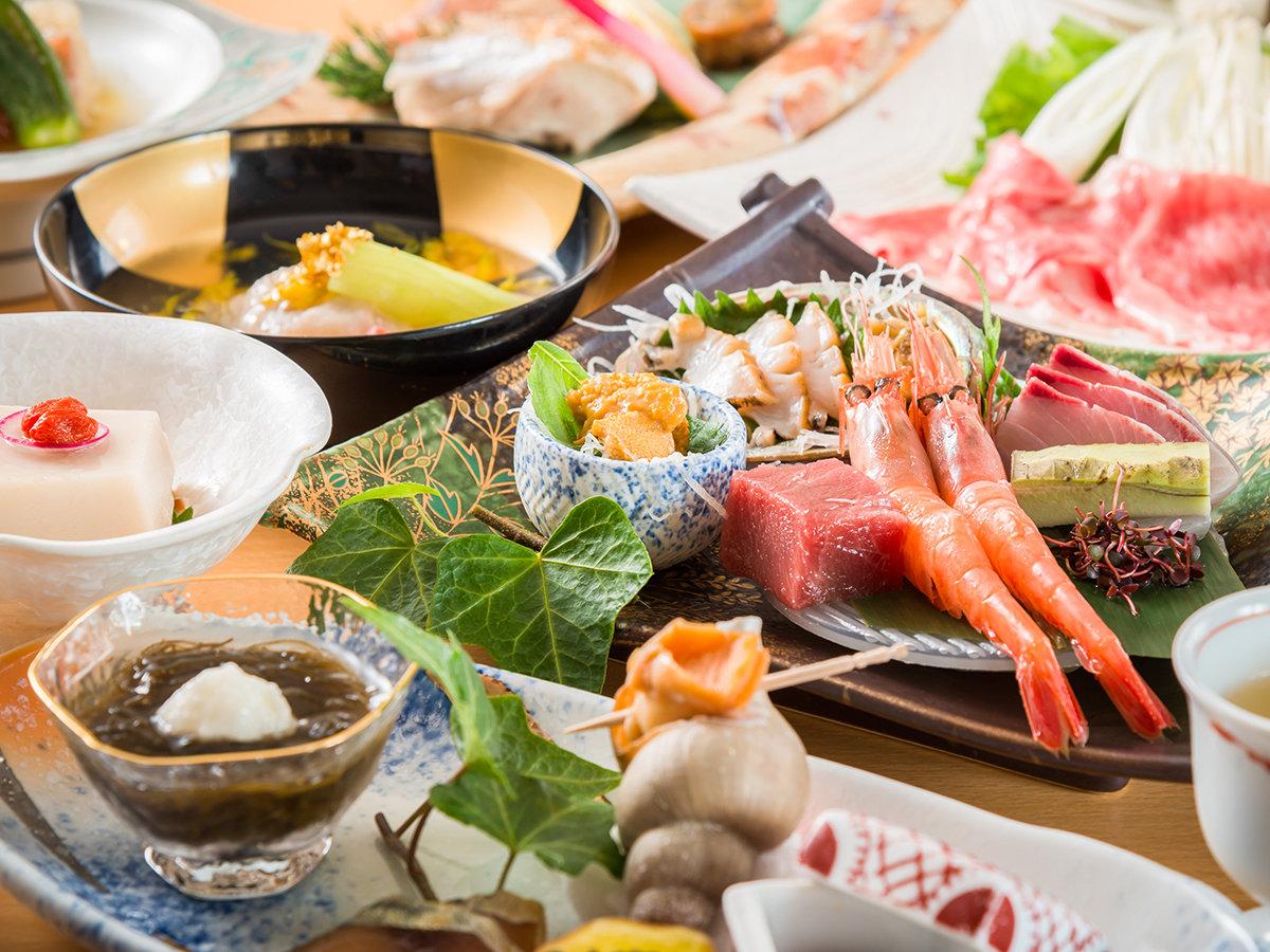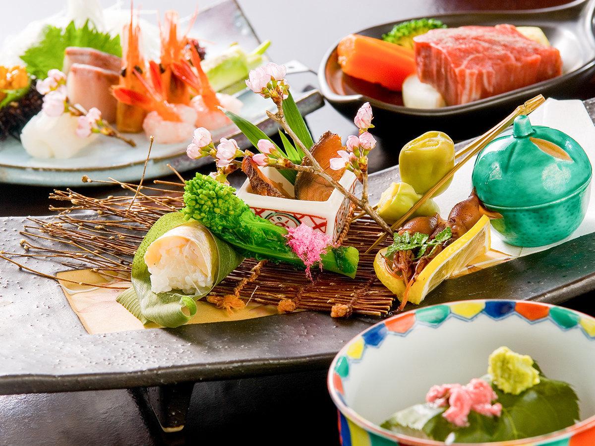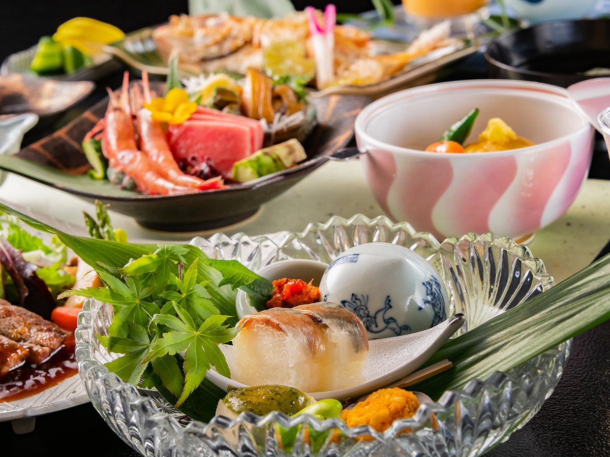 【夕食】越前郷土会席(一例):地元の厳選されたとれたて新鮮素...