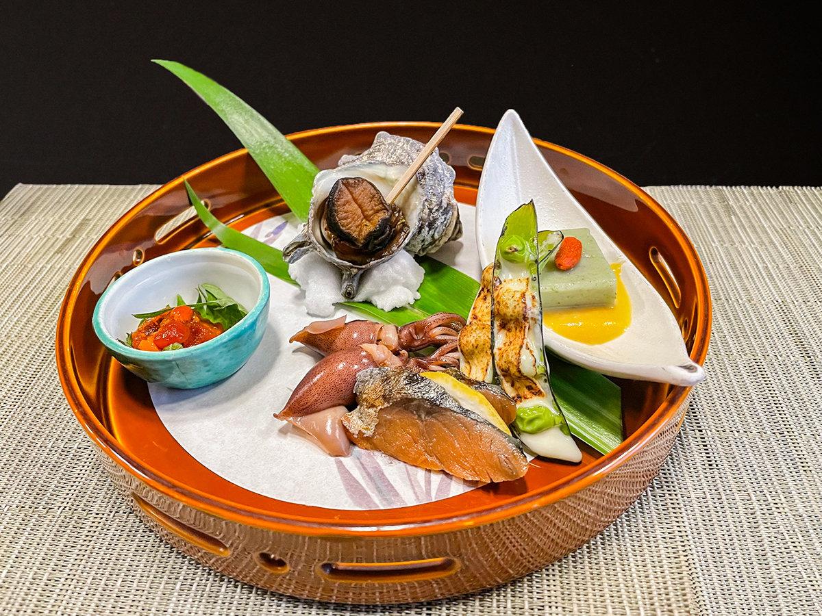 【夕食】八寸(一例):旬の食材を活かした一品です。