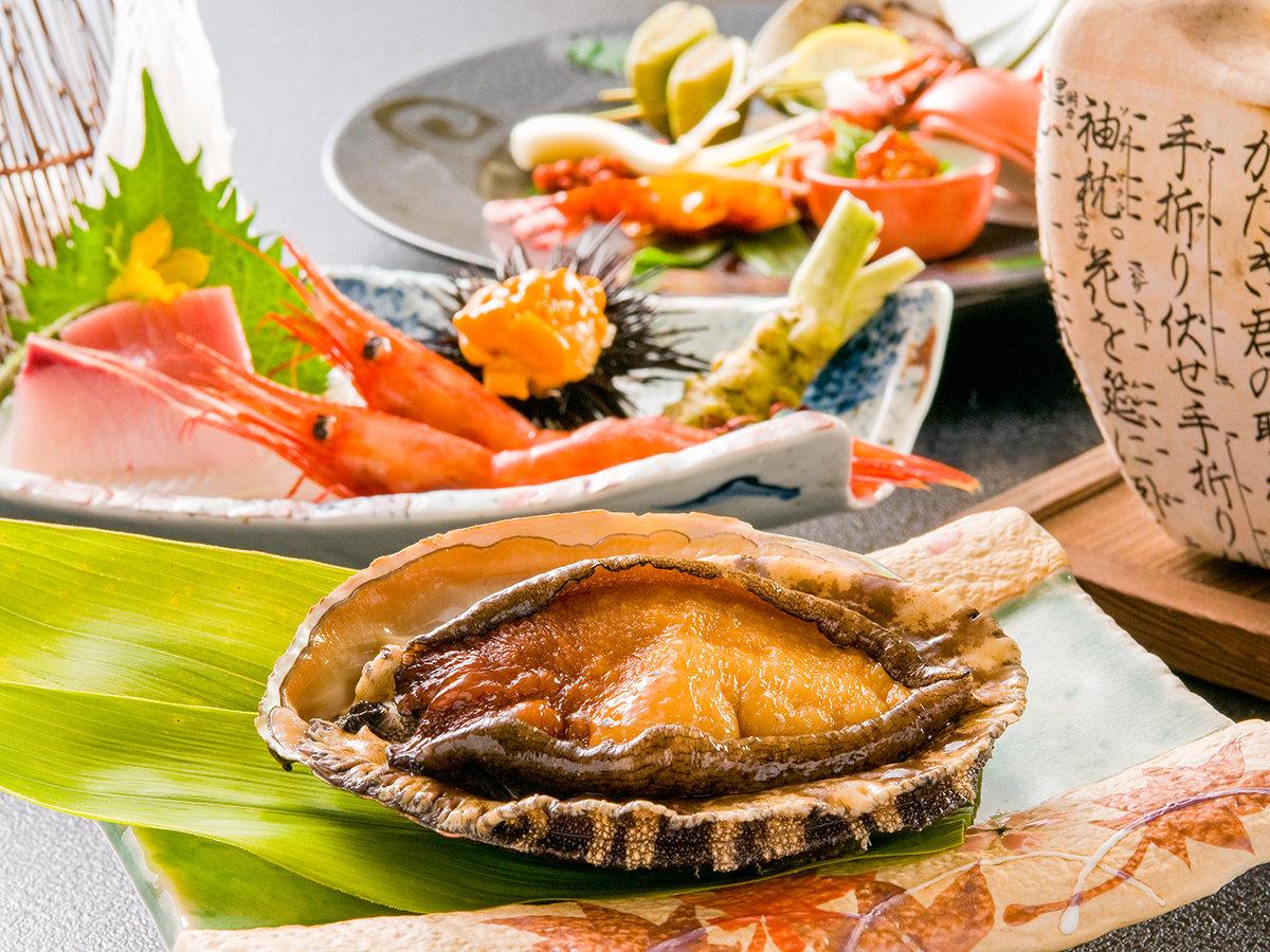 活あわび:日本海で獲れた新鮮なあわびを使用しており、様々な調...