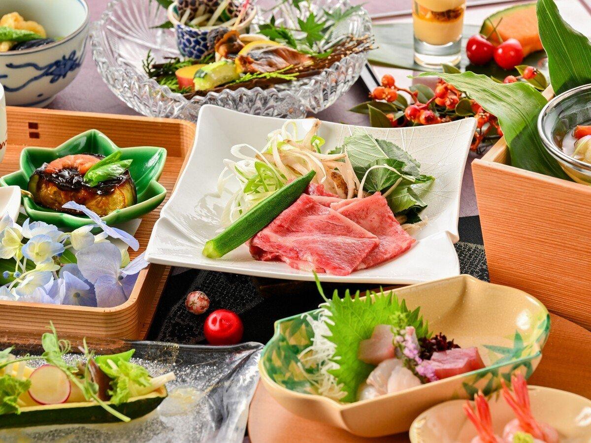【夕食】夏のお料理の一例:器も涼やかに。旬の素材をお楽しみく...