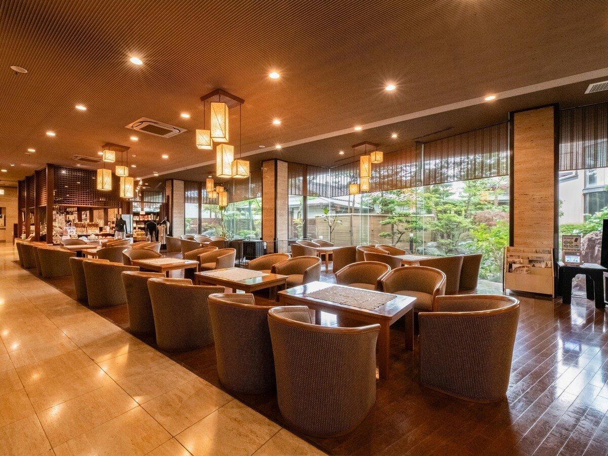 【喫茶前ロビー】湯上がりにお寛ぎいただくこともできるスペース...