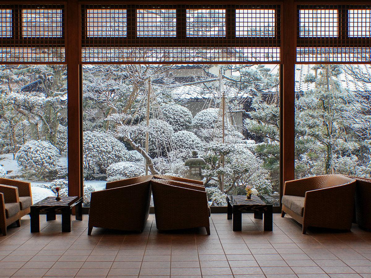 【エントランスロビー】雪が降ると雪化粧で真っ白なお庭をご覧い...