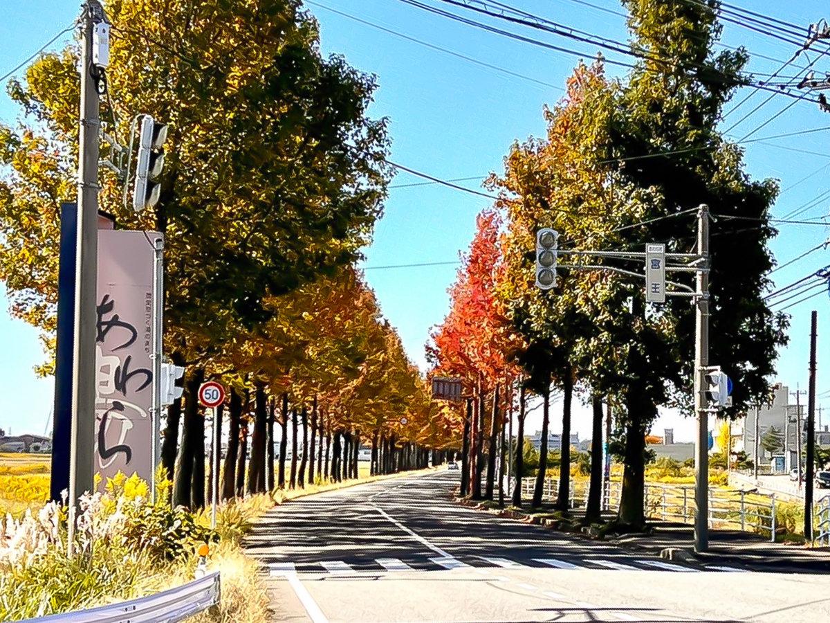 【秋】あわら温泉に続く通りに続く264本、全長約1㎞にわたる...