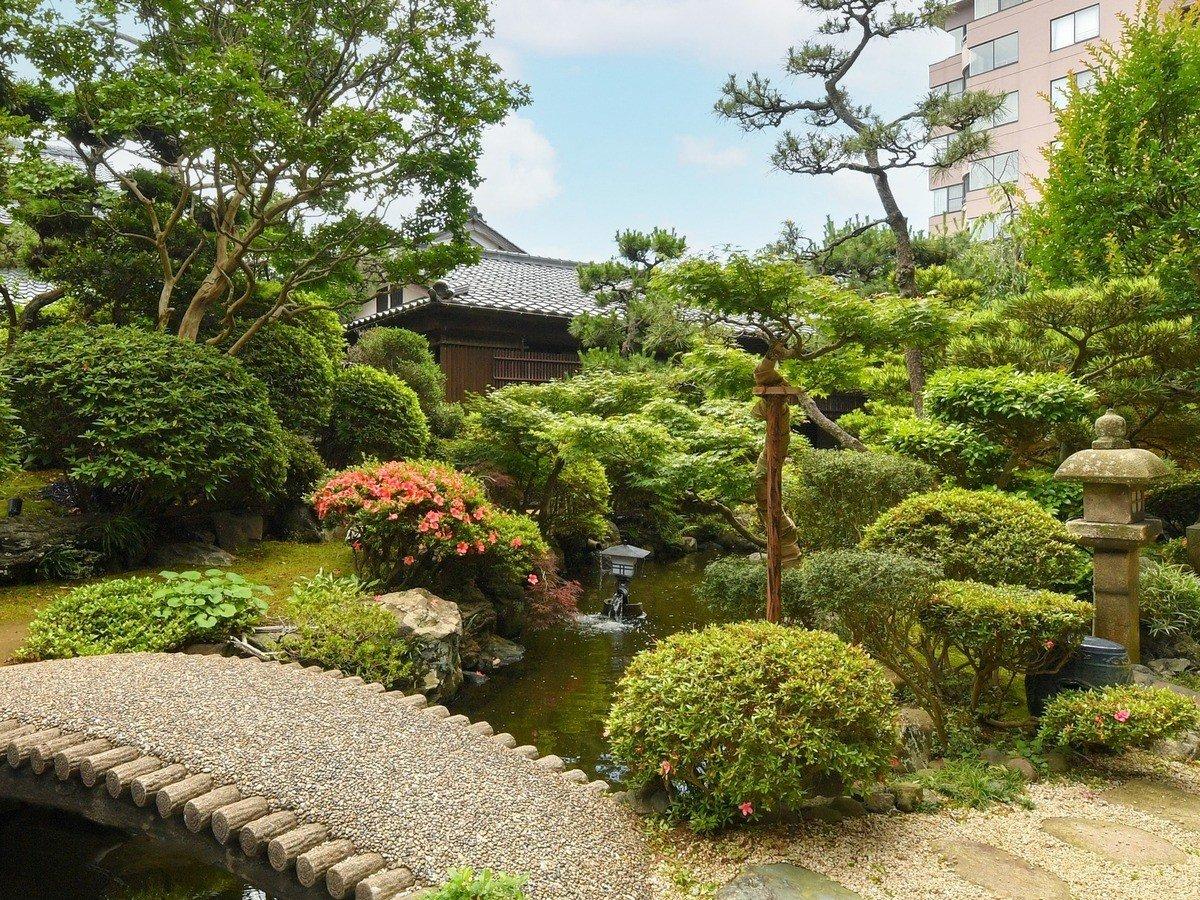 【庭園】よく手入れされた日本庭園の間を縫うように離れが続く…