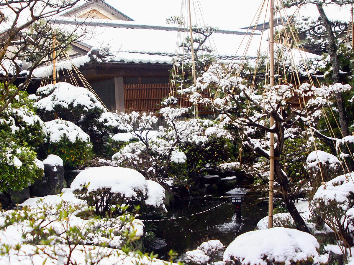 【庭園】<冬景色>美しく整えられた庭園の中、灰屋の庭師の技が...