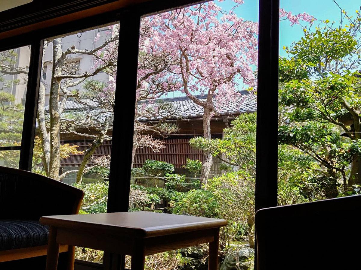 【庭園】<桜>松風庵の広縁から見たお庭。季節ごとの景観をお楽...