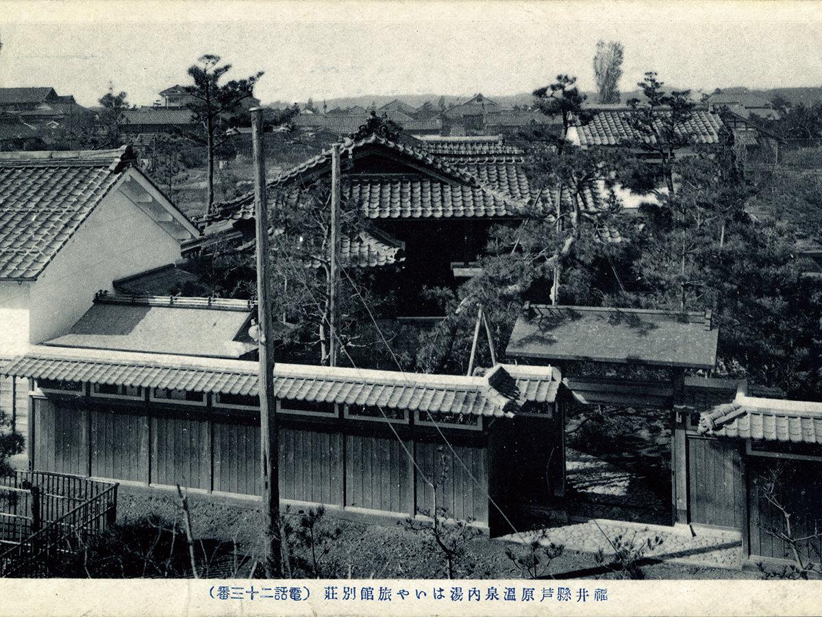 創業当時の玄関。創業明治17年に福井県あわらで創業した当館に...