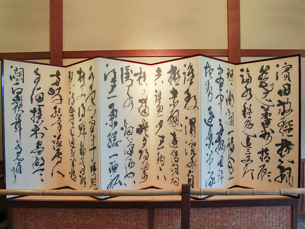 エントランスロビーに置かれている屏風。様々な種類の屏風がござ...