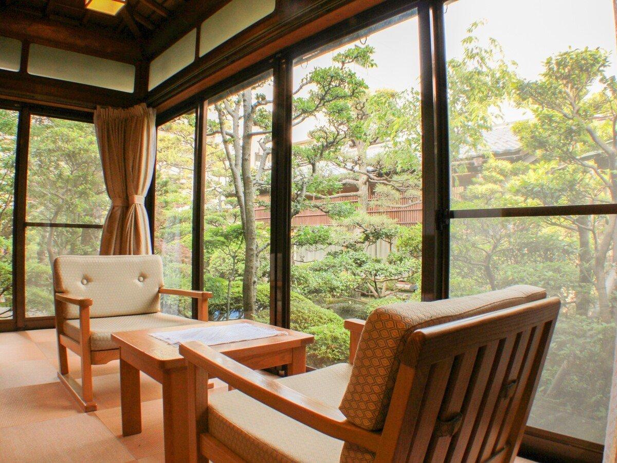 【松風庵:準特別室 朝陽】縁側から四季折々の表情を見せる庭園...