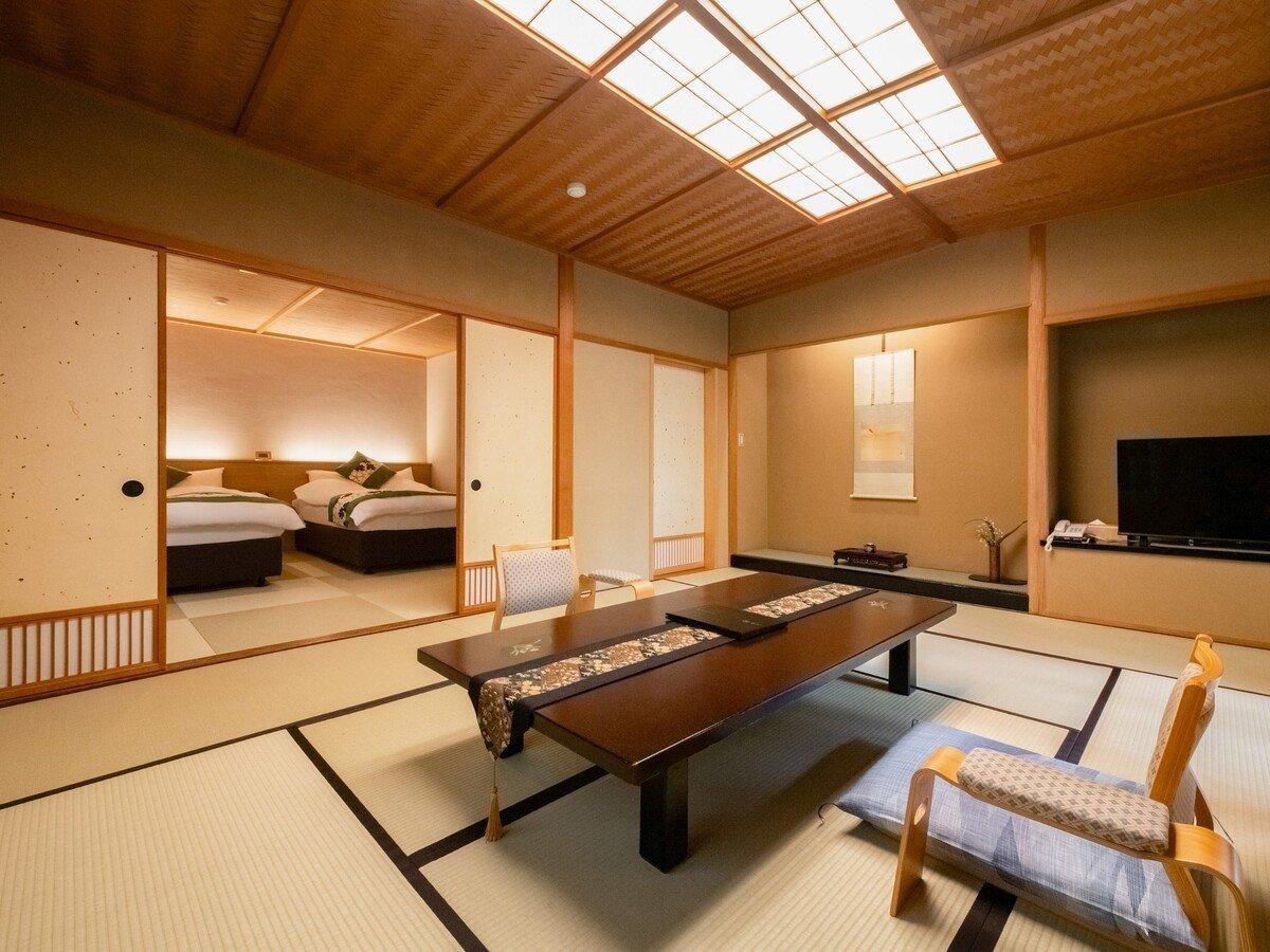 【本館十楽棟最上階】和室(ベッド付き):2間続きのお部屋の1...