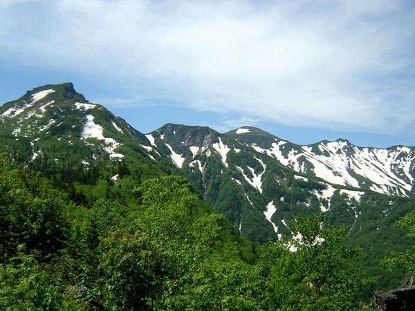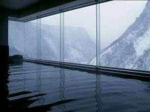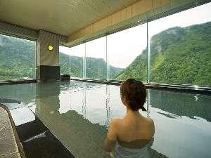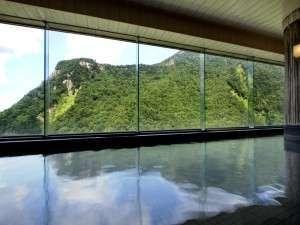 最上階大雪の湯の夏の景色。窓一面にダイナミックな景色をお楽し...