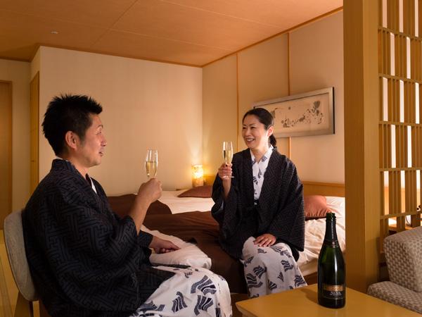 【雪ほたる・和洋室】ご夫婦や女性同士のご旅行に人気です。