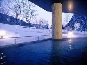 冬の天華の湯の露天風呂です。雪の降り初めと溶け初めには、エゾ...