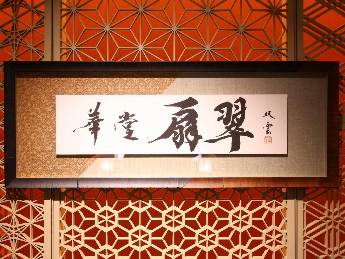 【食事処・華堂 扇翠】食事処入口にあり、和の趣に重厚感を与え...