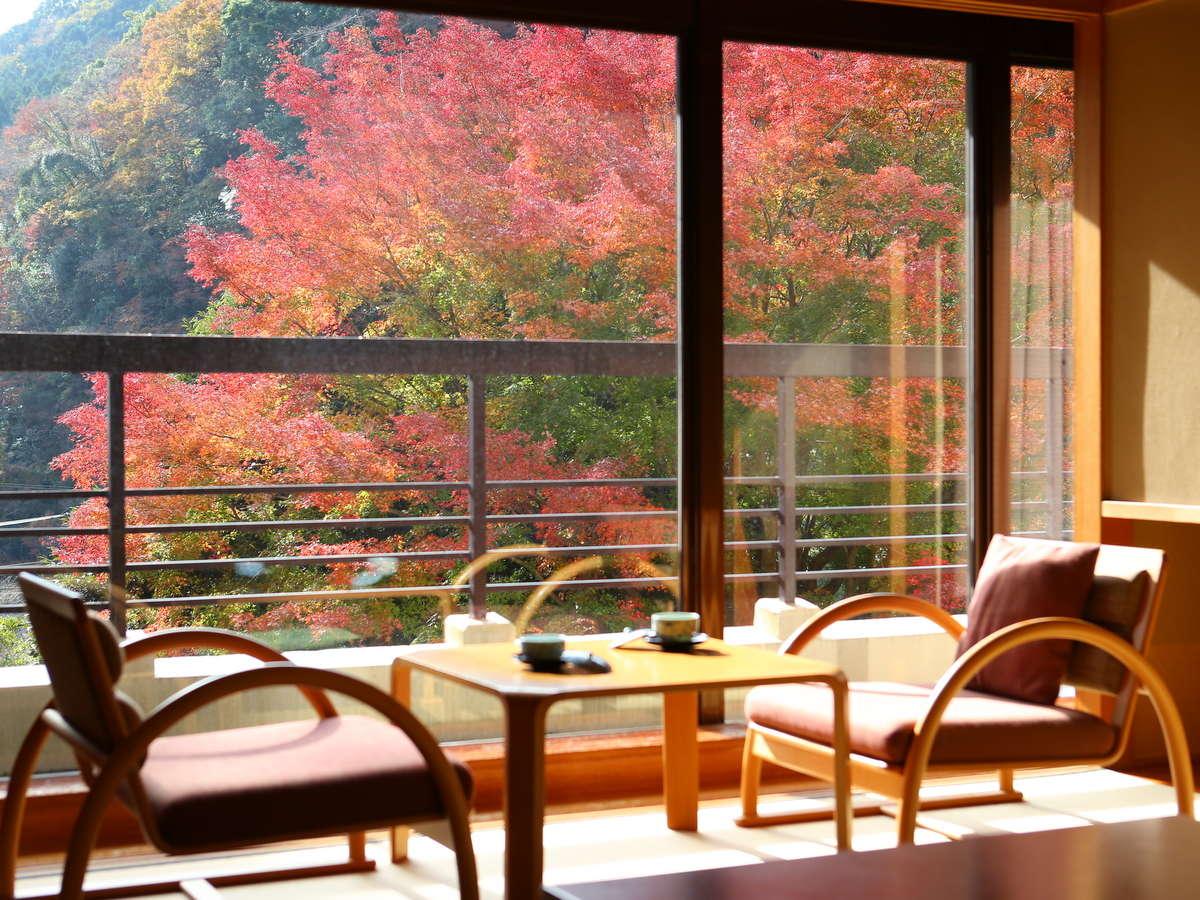 【聚楽第和室】大きく設けられた障子を開けてお部屋で紅葉狩りを